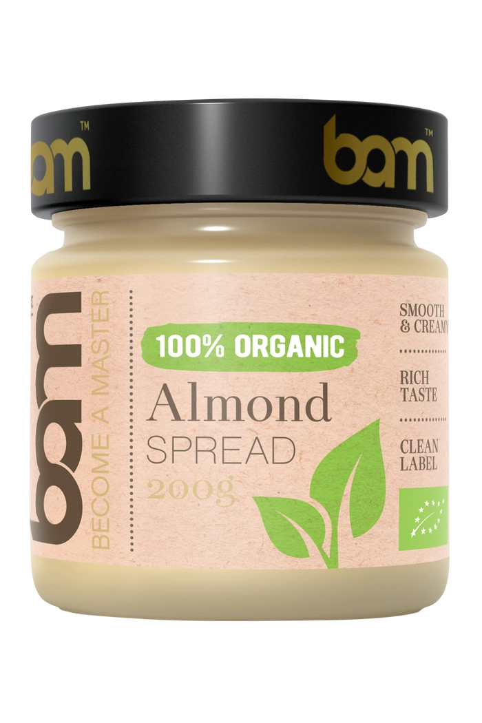 BAM 100% Organic Almond Spread (200 g) is created for those who are looking for the perfect balance between health and premium taste. The main ingredient is carefully selected, shelled and gently roasted organic almonds, which give the spread its rich aroma and silky texture. The spread is completely free of additives and contains only naturally occurring oils and sugars from the almonds. With an exceptionally high protein and fibre content, it is an indispensable source of energy for athletes, vegans and anyone who swears by a balanced diet. The creamy texture of the spread allows for endless uses: it is perfect as an addition to morning porridge, spread on pancakes, in post-workout smoothies, in the preparation of healthy desserts or simply to be enjoyed "by the spoonful" when you are craving something naturally sweet.